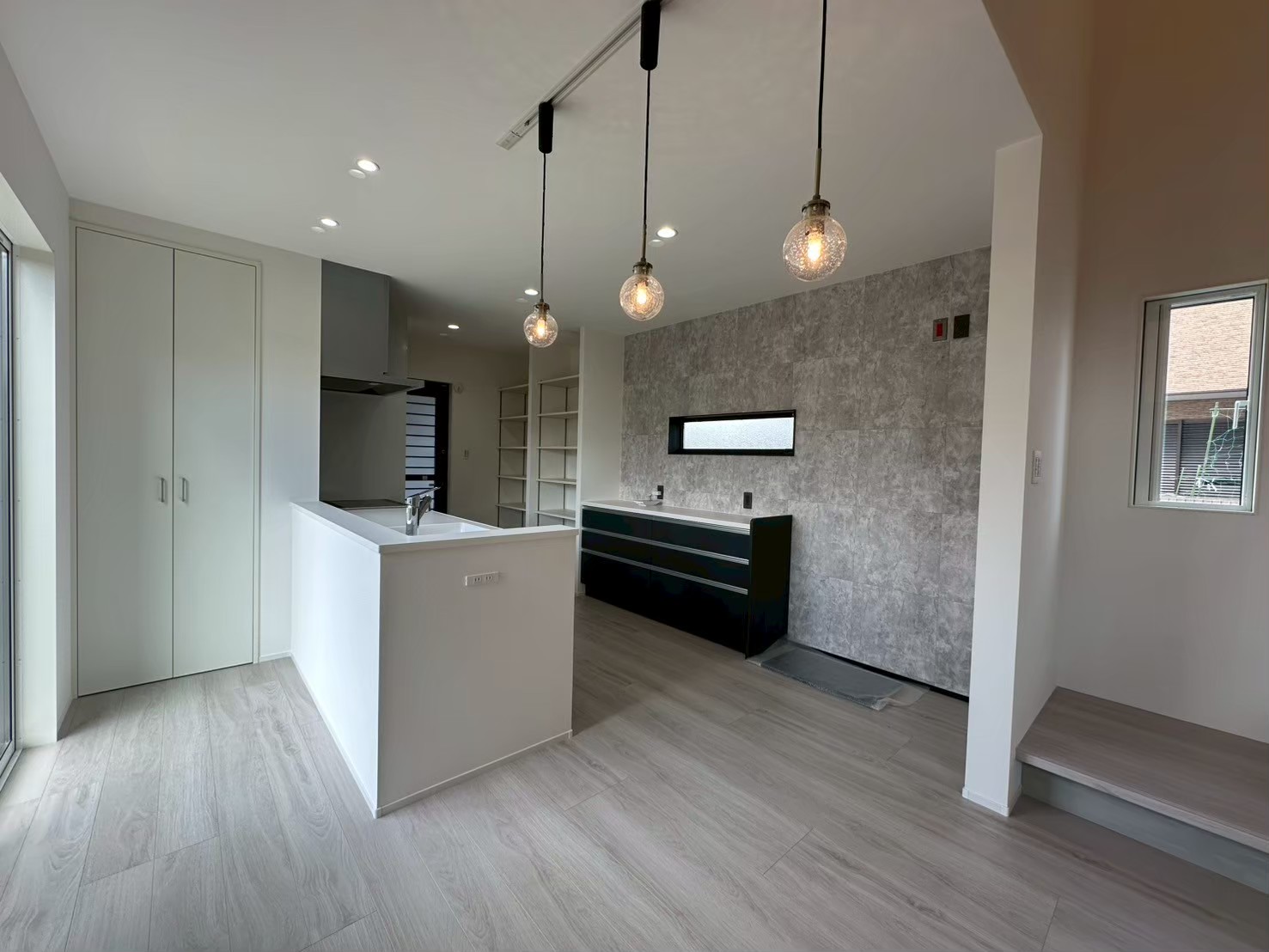 オートバス バス1坪以上 追焚機能 浴室暖房 浴室乾燥機 トイレ2ヶ所 タンクレストイレ 温水洗浄便座 シャワー付洗面化粧台 IHクッキングヒーター システムキッチン グリル 食器洗浄乾燥機 浄水器 全居室収納 クローゼット シューズIC 照明器具 間接照明 人感センサー付照明 ダウンライト 室内物干し 省エネ給湯器 プロパンガス 複層ガラス Low-Eガラス 全居室フローリング 電気 上水道 浄化槽 太陽光発電システム エアコン2台以上 ダブルロックドア モニタ付インターホン ディンプルキー 駐車場2台分  画像