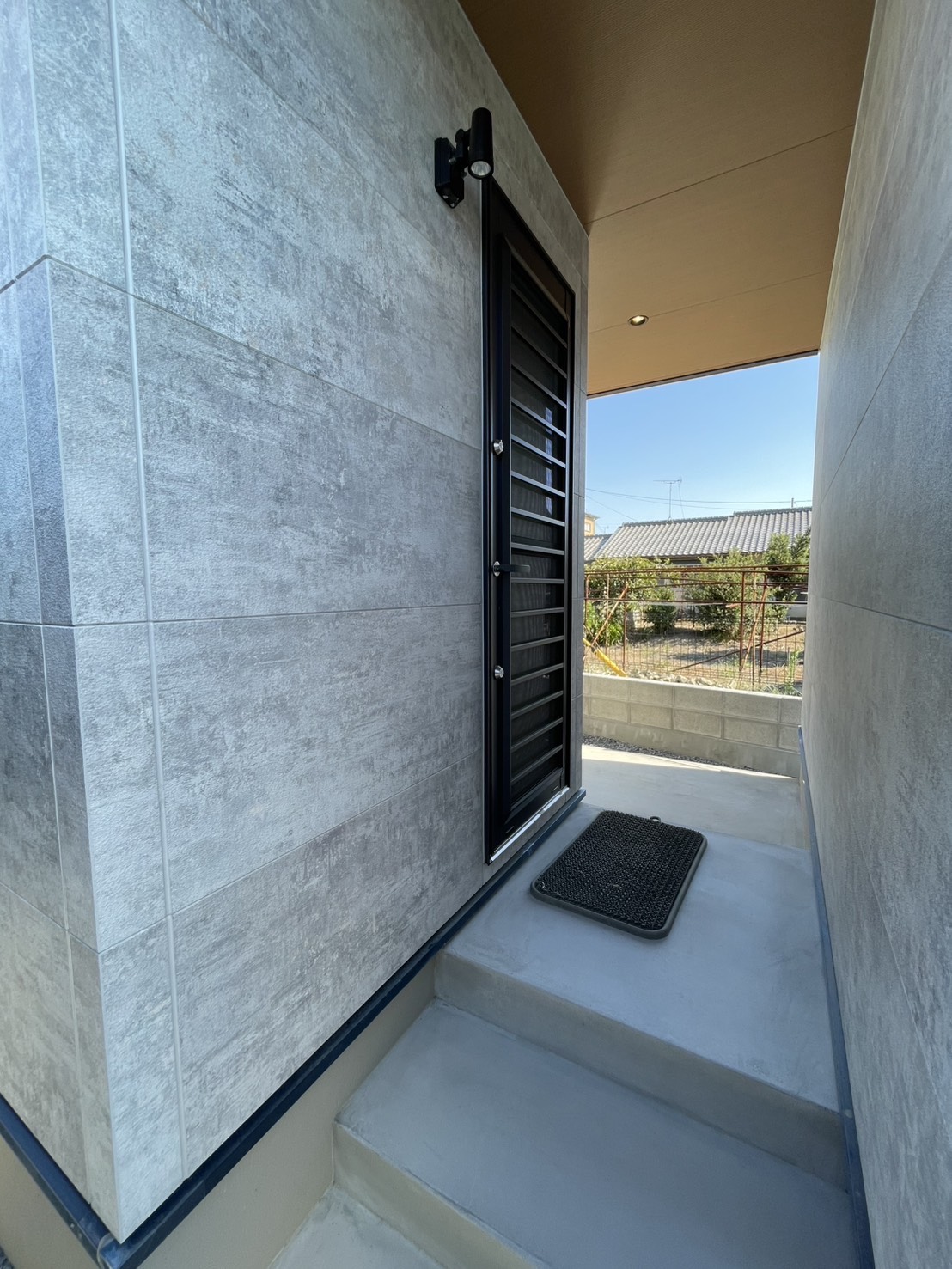 外壁は最新のサイディングにガルバリウムを織り交ぜ、おしゃれな外観仕様です。太陽光パネル5.22KW搭載。