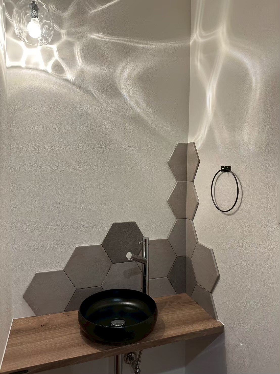 まず目に飛び込んでくるのは、タイル貼りまで施した「お帰り手洗い」。
