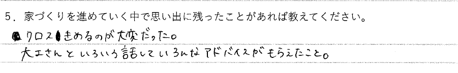 5.家づくりを進めていく中で思い出に残ったことがあれば教えてください。