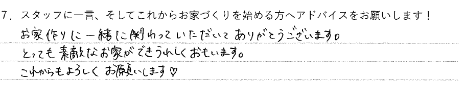 7.スタッフに一言、そしてこれからお家づくりを始める方へアドバイスをお願いします!