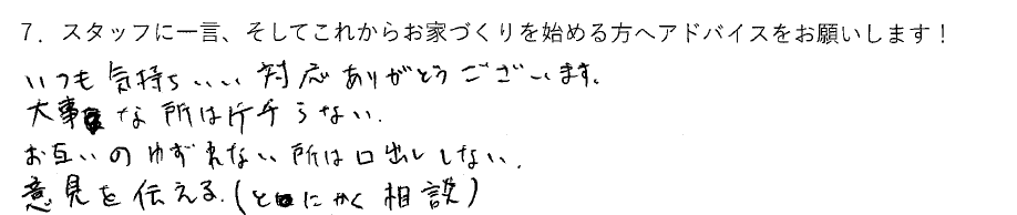 7.スタッフに一言、そしてこれからお家づくりを始める方へアドバイスをお願いします!